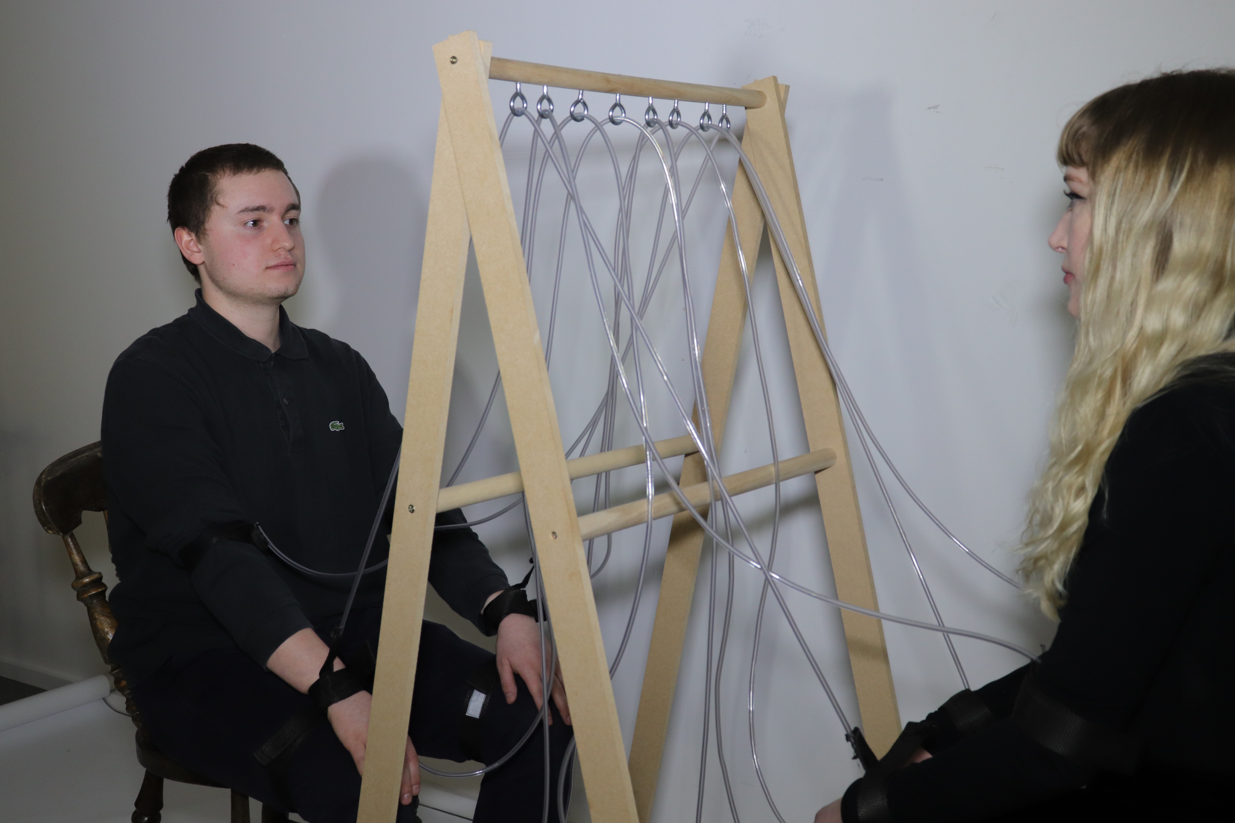 Our project started with focusing on the effects waiting lists have on mental health. We discovered listening has huge benefits to mental health. After talking to professionals, they gave us advice on whole body listening. We found out that letting a person have an alternative to diagnosis by our listening technique data and revealing an ‘active’ listening version of therapy. We did a variety of experiments to explore this theme with a learning demonstration video of objects we made to encourage active listening to the general public.